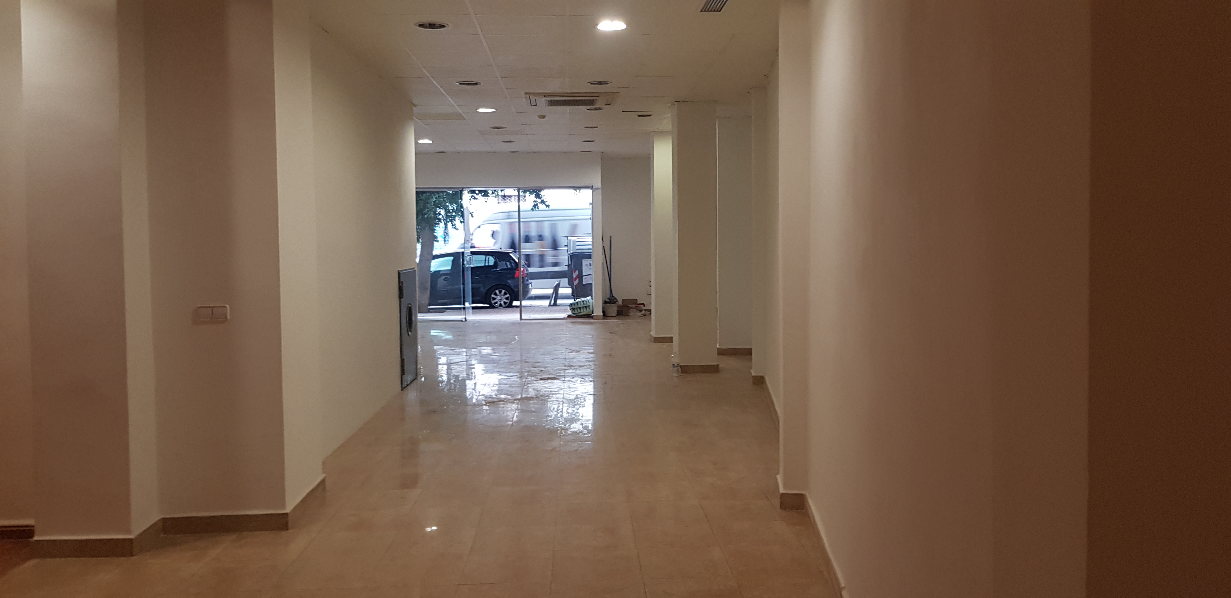 Local comercial de 250m2 en el centro de Valencia, junto a la C/San Vicente y Plaza de España. Con escaparate, aire acondicionado y baño.